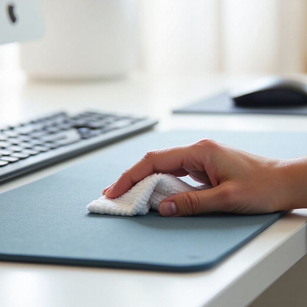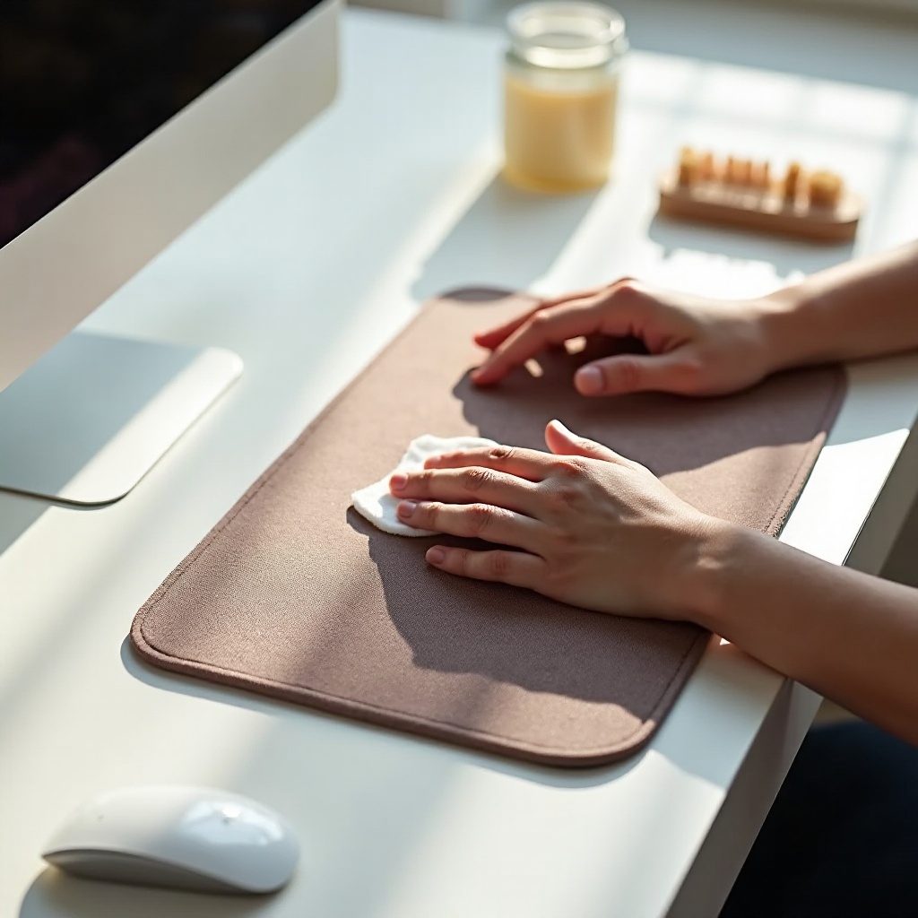 ข้อควรระวังก่อนเริ่ม: ทดสอบบนพื้นที่เล็กๆ ก่อนทำความสะอาดทั้งหมด จัดการแผ่นรองเมาส์ของคุณอย่างอ่อนโยนเพื่อหลีกเลี่ยงความเสียหายทางกาย การทำขั้นตอนง่ายๆ นี้จะป้องกันเหตุการณ์ที่ไม่จำเป็น
